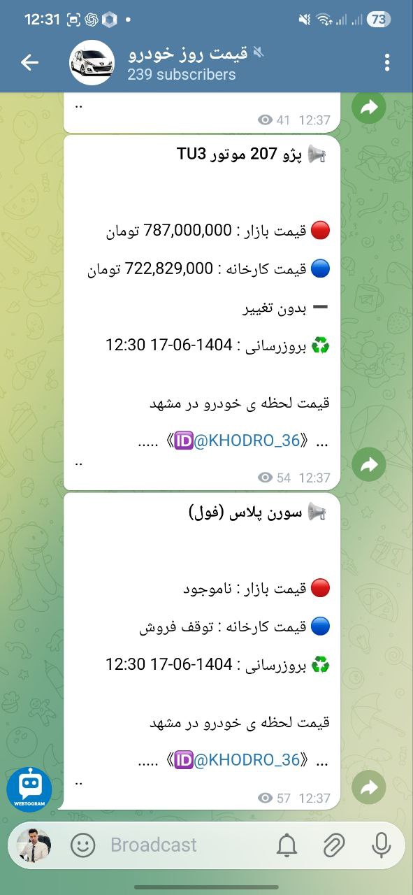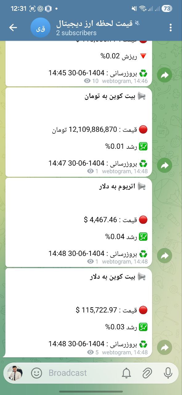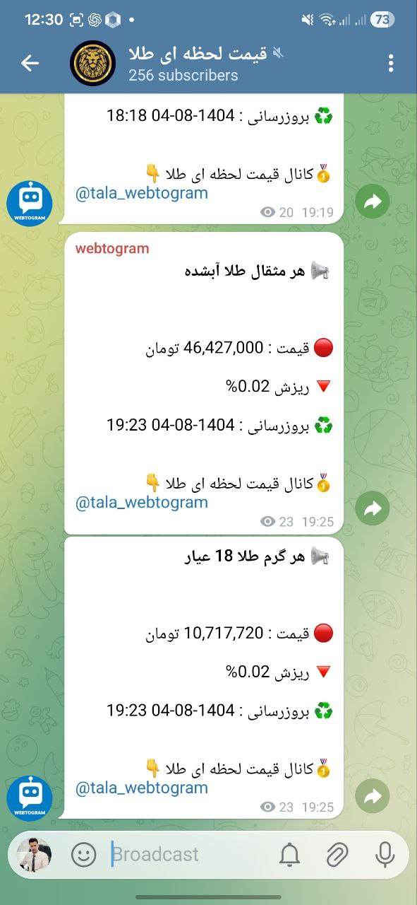 نوسان WebtoGram | انتشار لحظه‌ای قیمت طلا، دلار، ارز دیجیتال و خودرو در تلگرام ، ایتا و بله